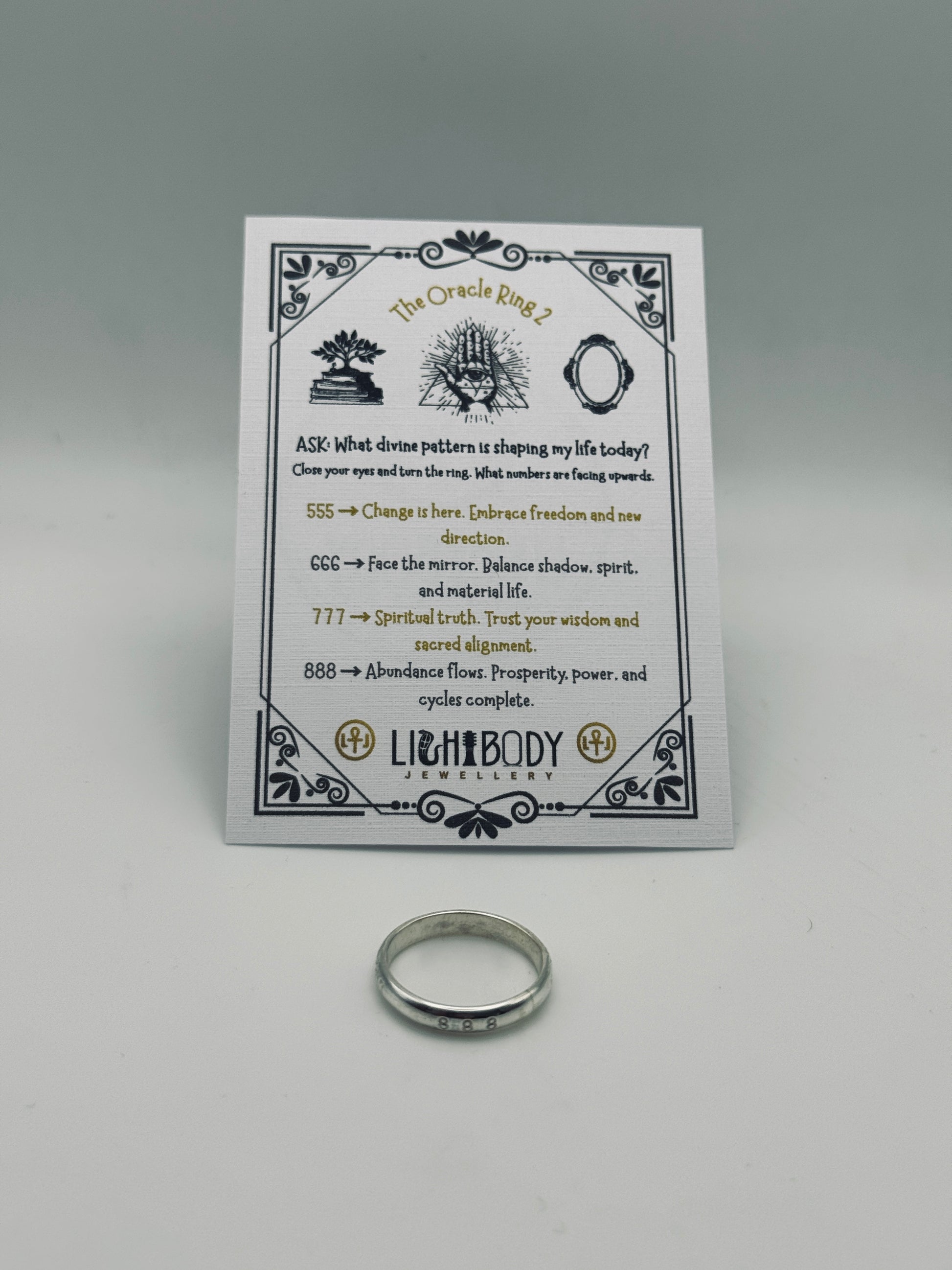 Your ring is paired with a wallet-sized Oracle Card,