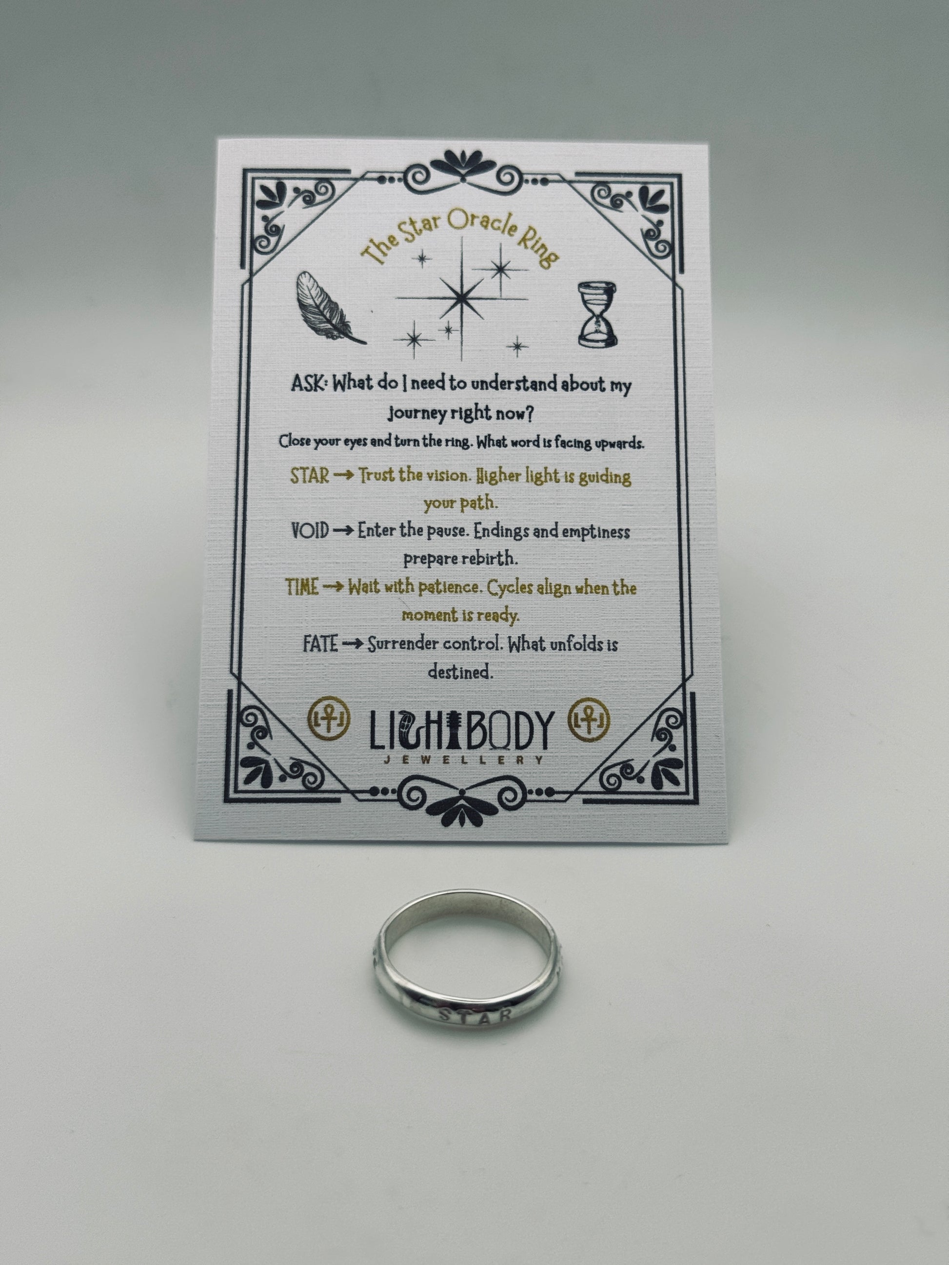 Your ring is paired with a wallet-sized Oracle Card,