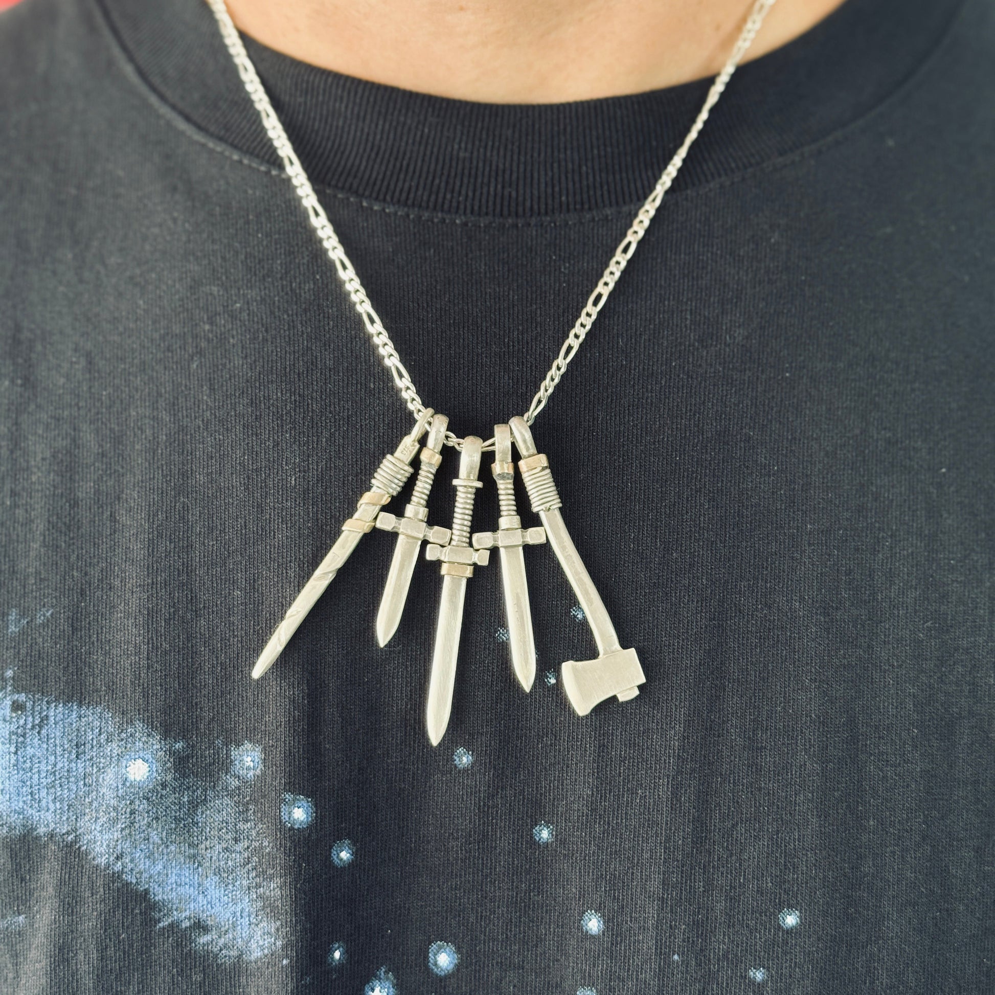 Forged entirely by hand in sterling silver and solid 9ct gold, the axe embodies the alchemical union of the Moon and the Sun — silver grounding the piece in reflective lunar awareness while gold carries the radiant spark of solar force.