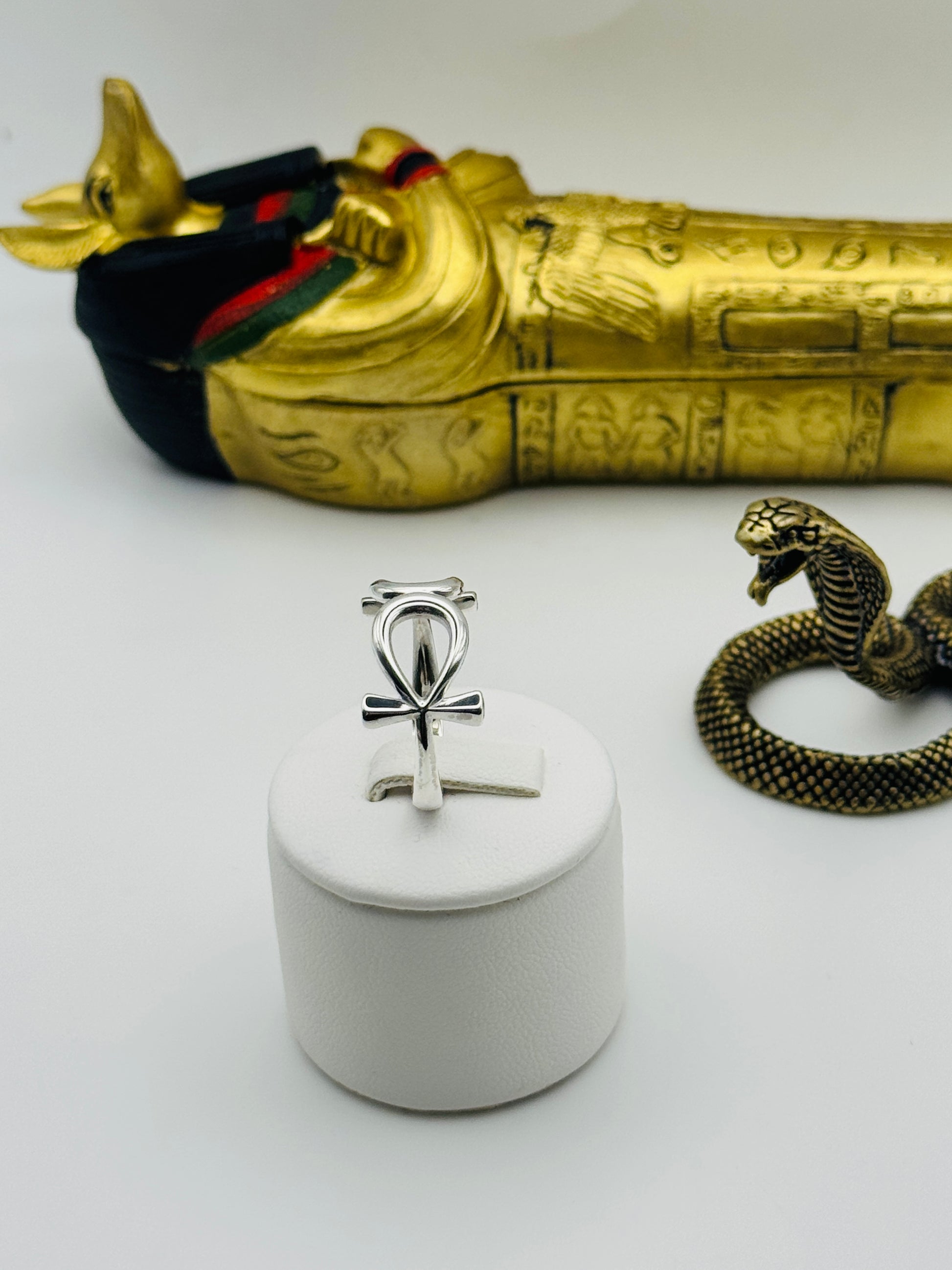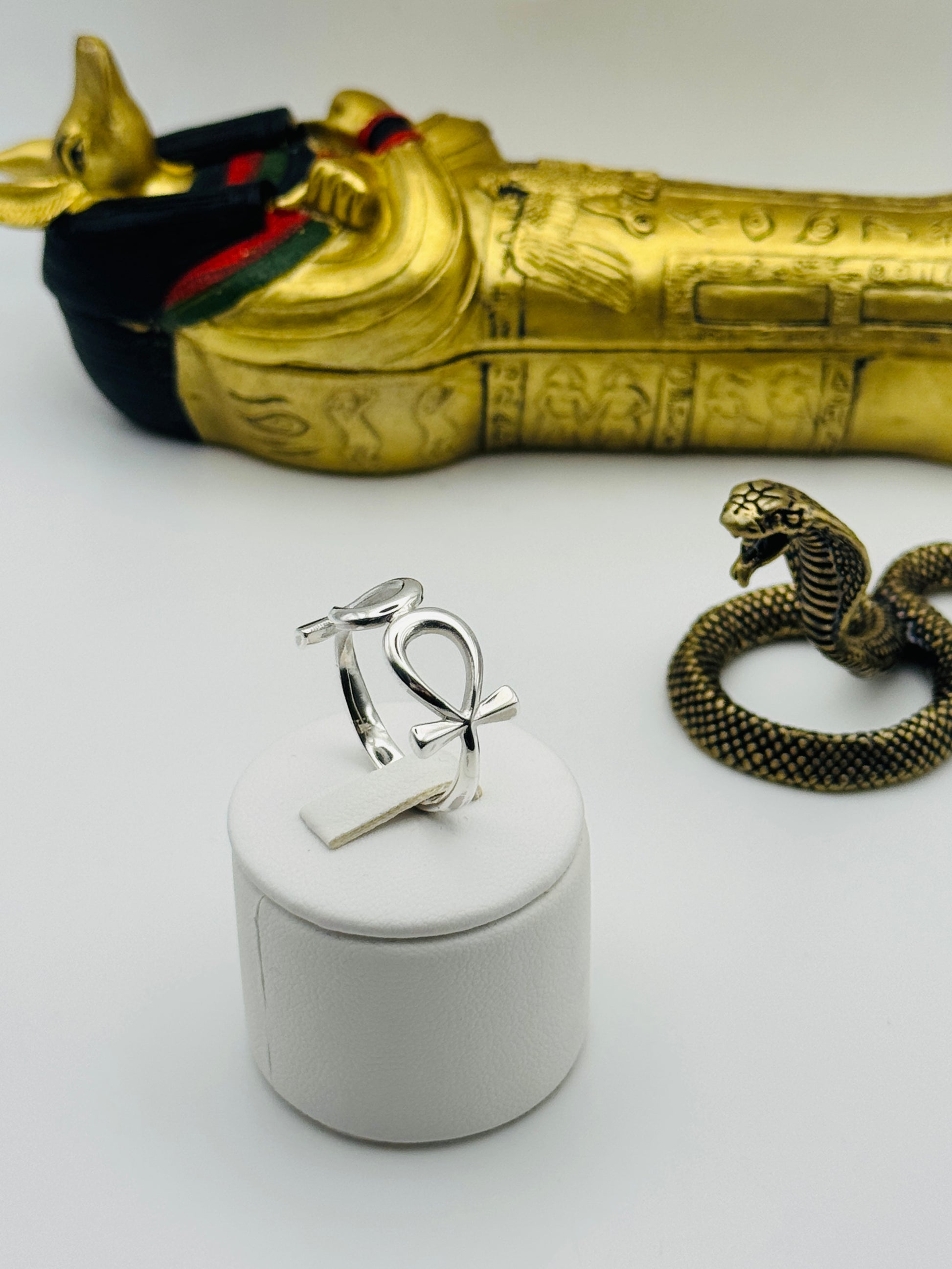 Dimensions: Band 3mm | Face (x2 Ankhs): 10mm × 21mm